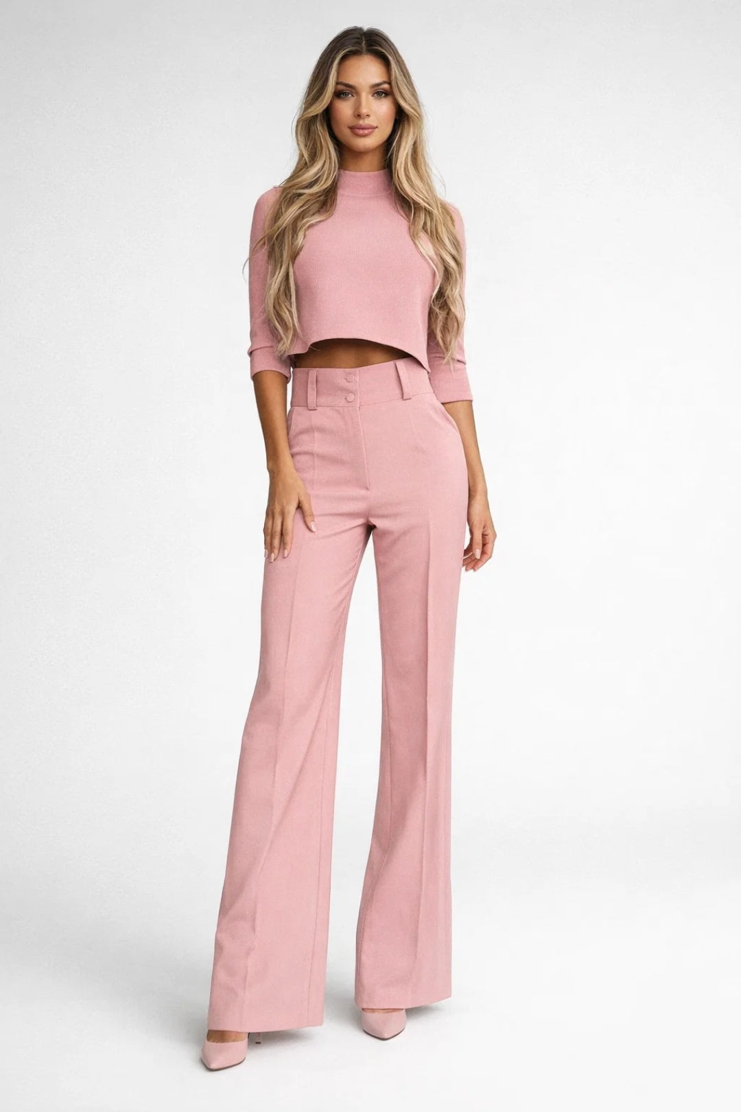 Modernt kostymset för kvinnor | kort jacka med knappar och byxor med hög midja | lätt och andningsbart