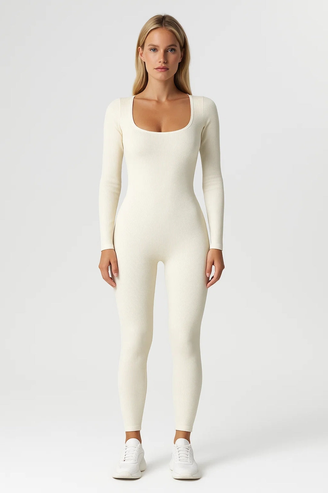 En mångsidig och stilren damoverall i minimalistisk design som kombinerar komfort med en figurnära silhuett. Det ribbade materialet följer kroppens form på ett smickrande sätt, medan de långa ärmarna och den rena designen gör plagget perfekt att bära året runt – både till vardags och i mer avslappnade sammanhang.